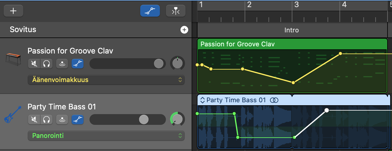 Automaatio: äänenvoimakkuus, panorointi ja efektien ohjaus