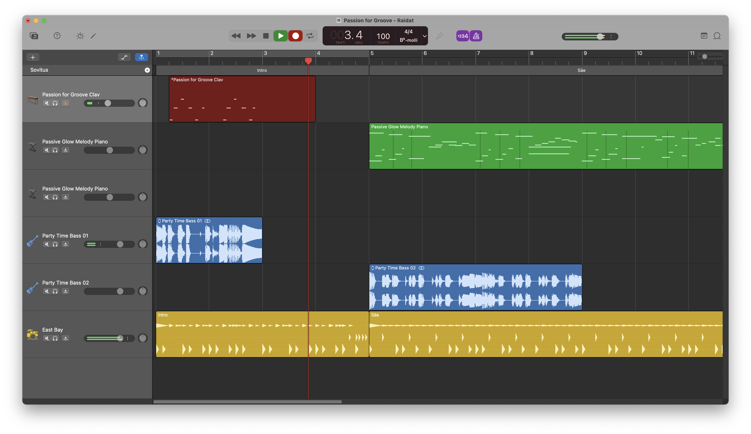 Äänenvoimakkuus: Voit nostaa tai laskea tasoa eri kohdissa kappaletta. Näin voit tehdä esimerkiksi fade in tai fade out -tehosteen.