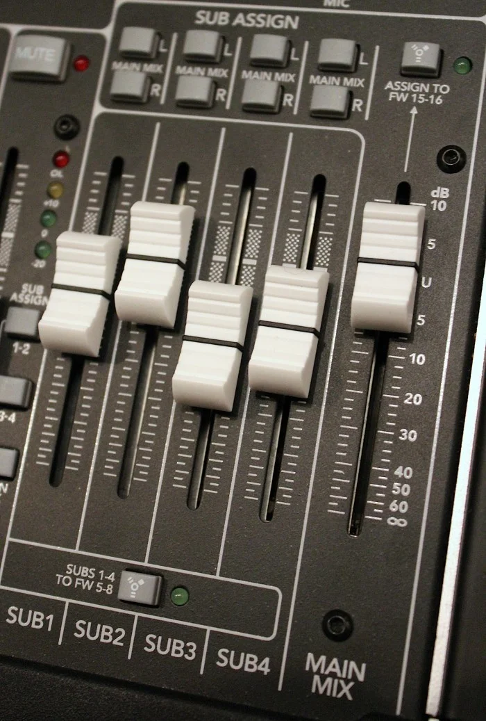 Ryhmäliu'ut (kuvassa Sub 1-4) on sijoitettu master-liu'un (Main Mix) viereen. Kuvan mikserissä on neljä ryhmää, ja näin ollen myös ryhmäliukuja on neljä. Ryhmäliu'uille kootut signaalit voidaan reitittää edelleen master-liu'ulle (Sub Assign to Main Mix L/R).